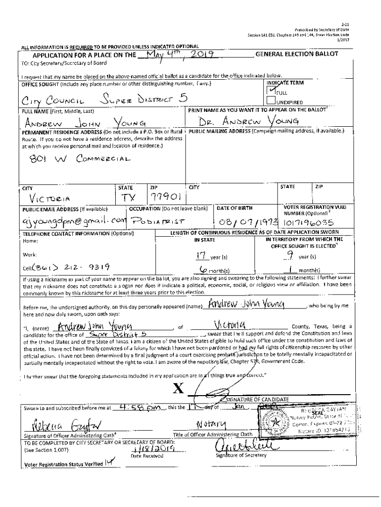 2 21Prescribed Section141. 031, Chapters by Secretary of State143 and 144, TexasElectionCode1/ 2017ALL INFORMATION IS REQUIRED TO BE PROVIDED A PLACEAPPLICATIONUNLESSINDICATEDOPTIONAL2G IMAM (\' I