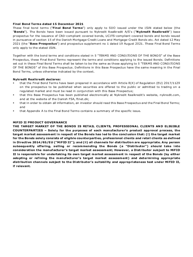 Get the free New Final Bond Terms for Nykredit Realkredit A/S's Base