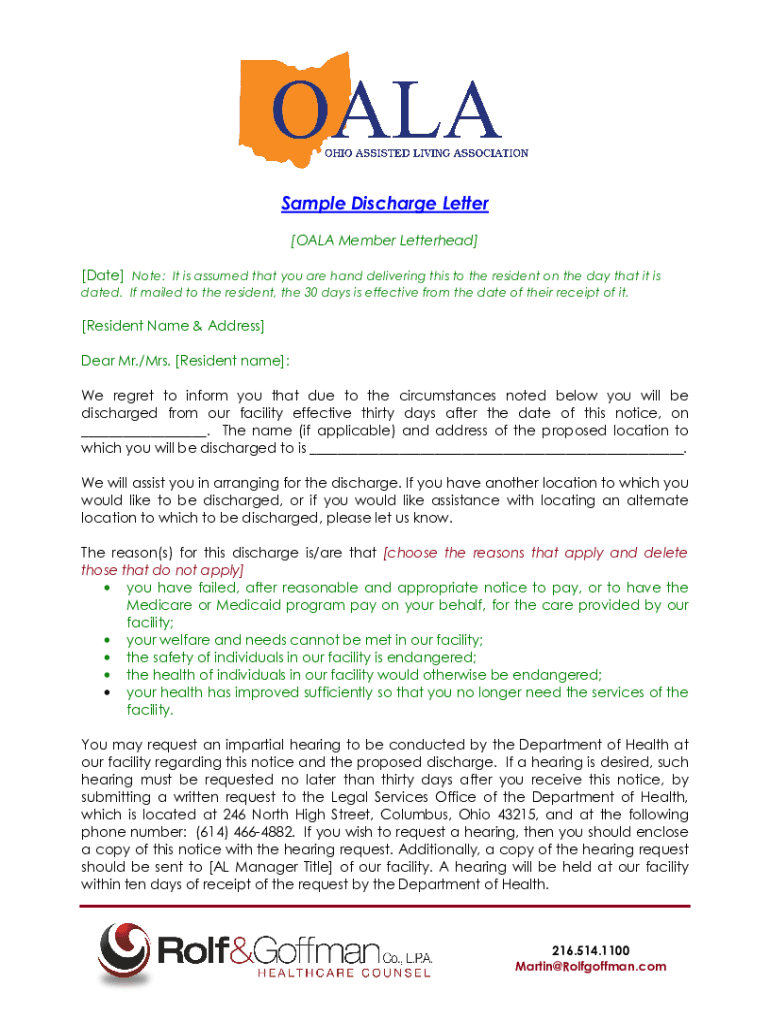 Get the free Sample Discharge Letter - Ohio Assisted Living