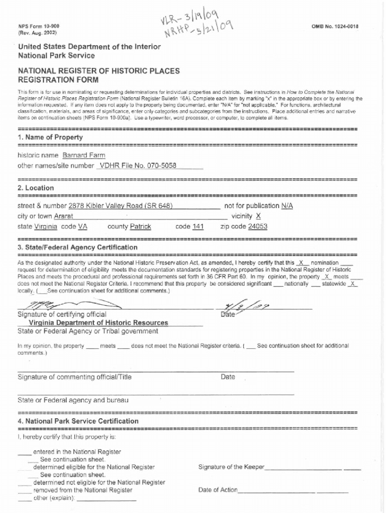 Property owners or advocates seeking to nominate a property for listing on the National Register of Historic Places are required to file the www.dhr.virginia.gov/vlrtotransferpdf/noms national register forms template.