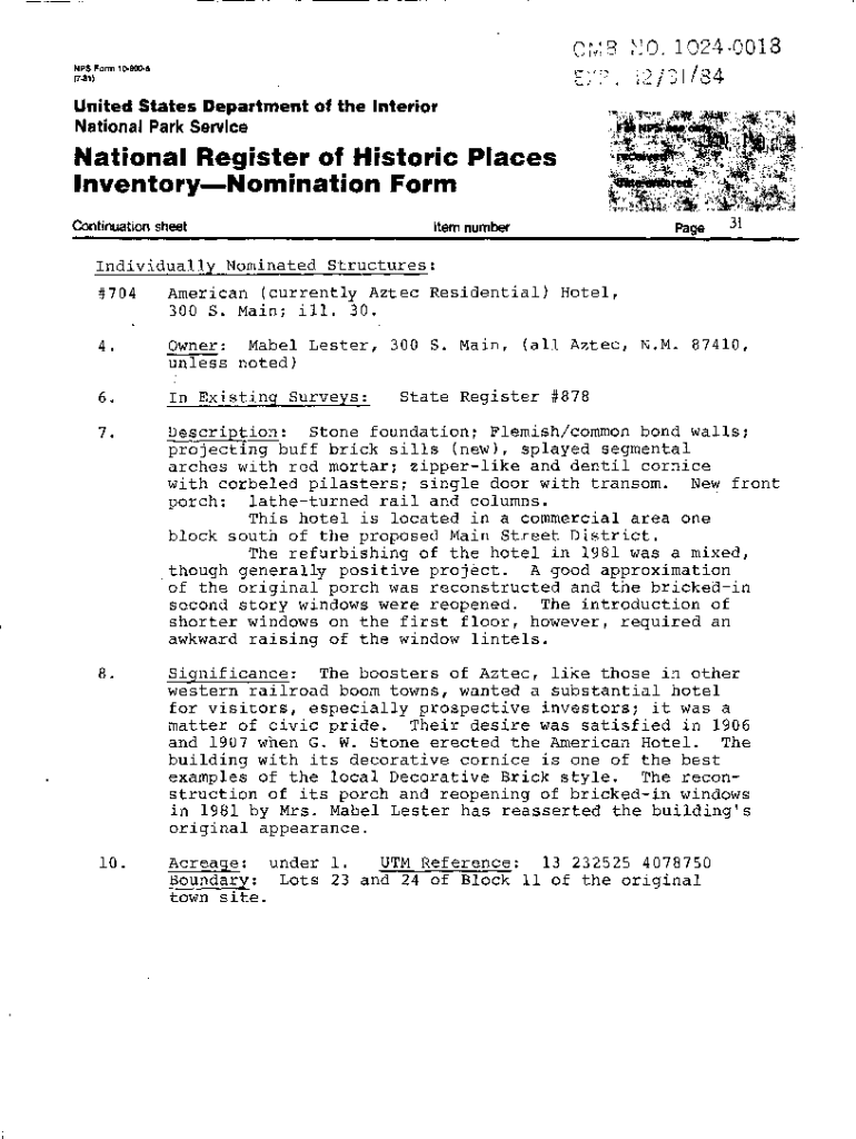 NO, 10240018 Respond 1,900United States Department of the Interior National Park ServiceNational Register of Historic Places Inventory Nomination Form Continuation sheet___Item number___Page___Individually