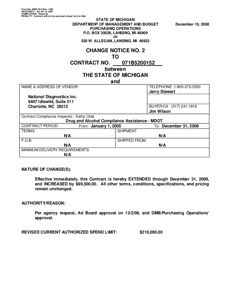 Form No. DUB 234 (Rev. 1×96) AUTHORITY: Act 431 of 1984 COMPLETION: Required PENALTY: Contract will not be executed unless form is fieldstone OF MICHIGAN DEPARTMENT OF MANAGEMENT AND BUDGET PURCHASING