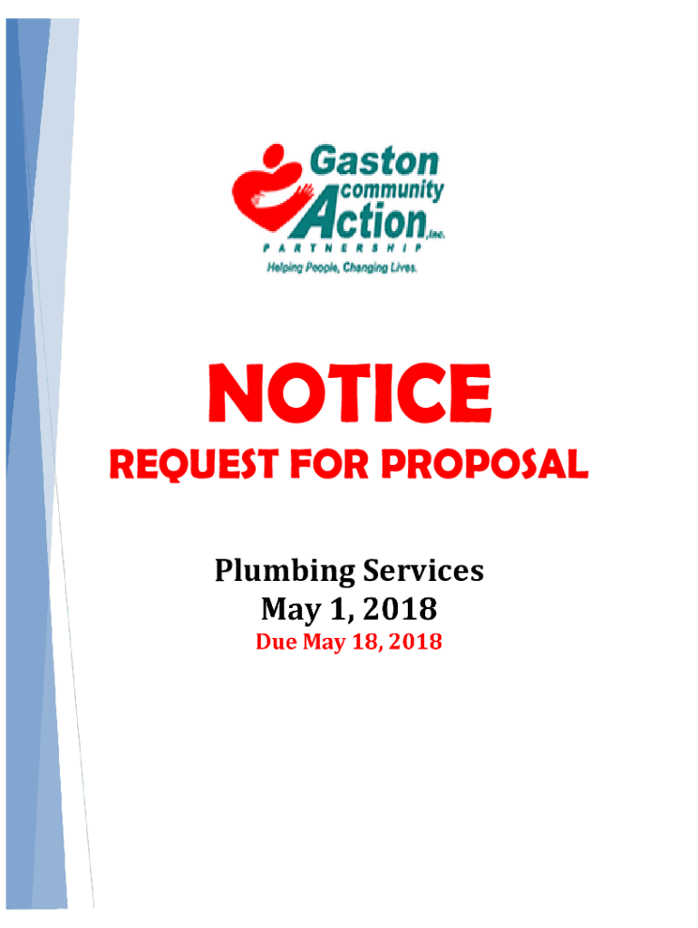 NOTICE REQUEST FOR PROPOSAL Plumbing ServicesPlumbing Services Specifications Instructions×Information to Prospective Bidders Invitation to Bid Gaston Community Action, Inc. is requesting proposals
