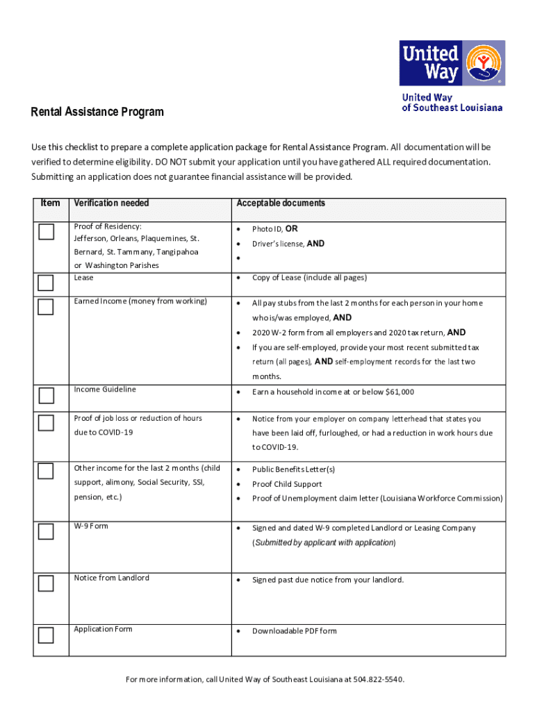 Rental Assistance Program Application Submit this application along with the required documentation listed on the application checklist to financial capability×unitedwaysela.org. All documentation