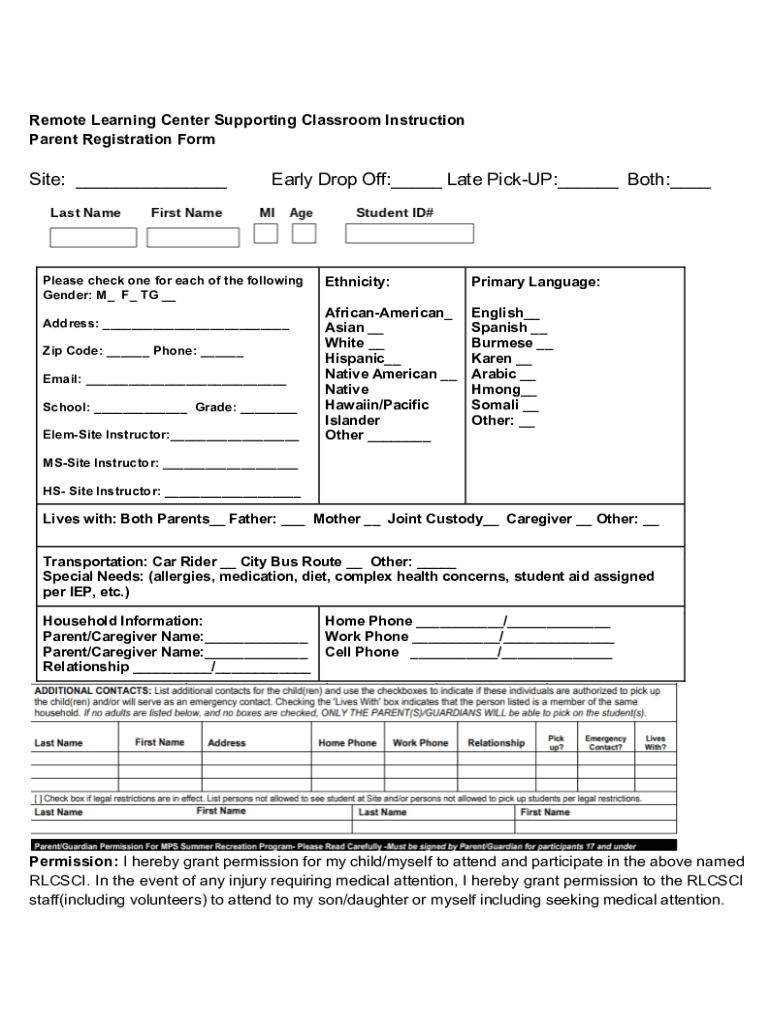 Get the free Remote Learning Center Parent Registration Form .docx