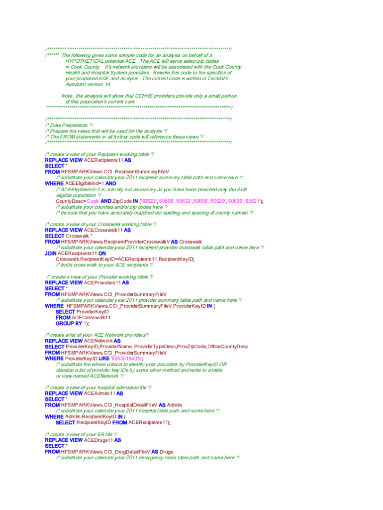 /**********************************************************************************************/ /****** The following gives some sample code for an analysis on behalf of a HYPOTHETICAL potential