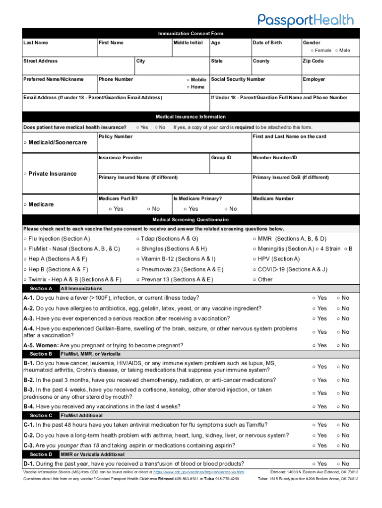 Immunization Consent Form Last NameFirst NameMiddle InitialAgeDate of Bartender Female Backstreet AddressCityPreferred Name×NicknameStatePhone NumberCountyZip Code Mobile Social Security NumberEmployer