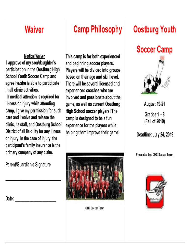 Waiver Medical Waiver approve of my son×daughters participation in the Roseburg High School Youth Soccer Camp and agree he×she is able to participate in all clinic activities. If medical attention