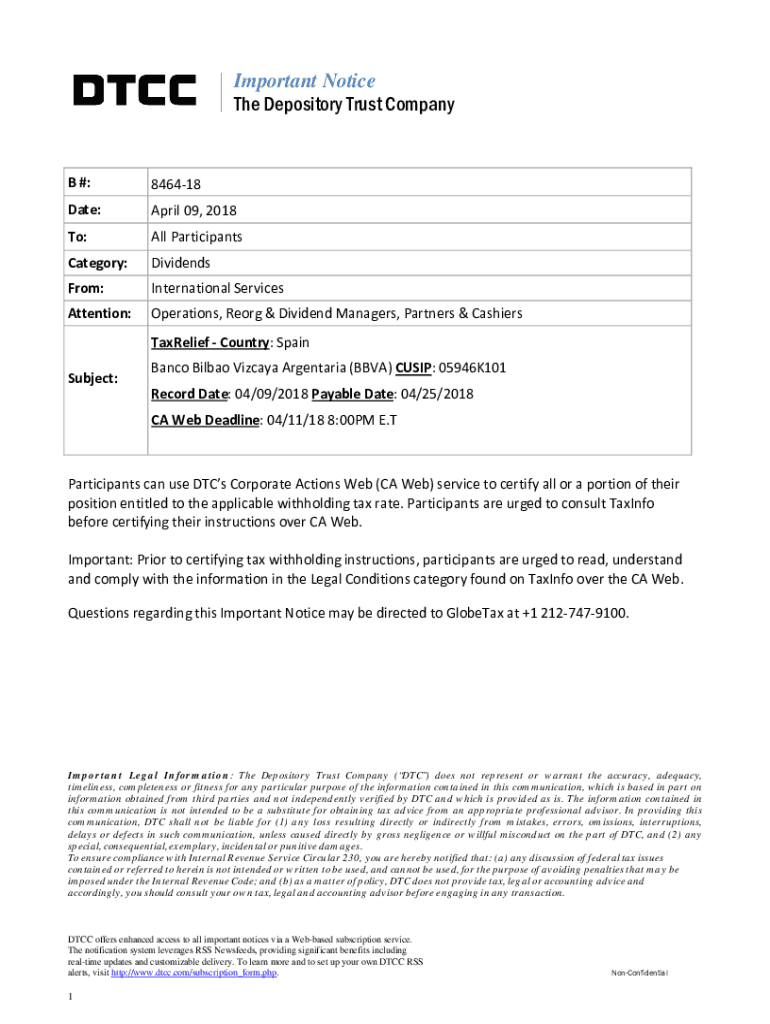 Important Notice The Depository Trust Company#:846418Date:April09,2018To:AllParticipantsCategory:DividendsFrom:InternationalServicesAttention:Operations, Reorg&DividendManagers, Partners&Cashiers
