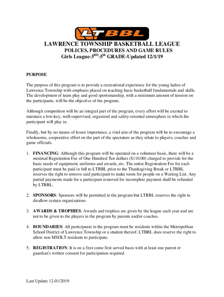 Get the free LAWRENCE TOWNSHIP BOY'S BASKETBALL LEAGUE POLICIES AND ...