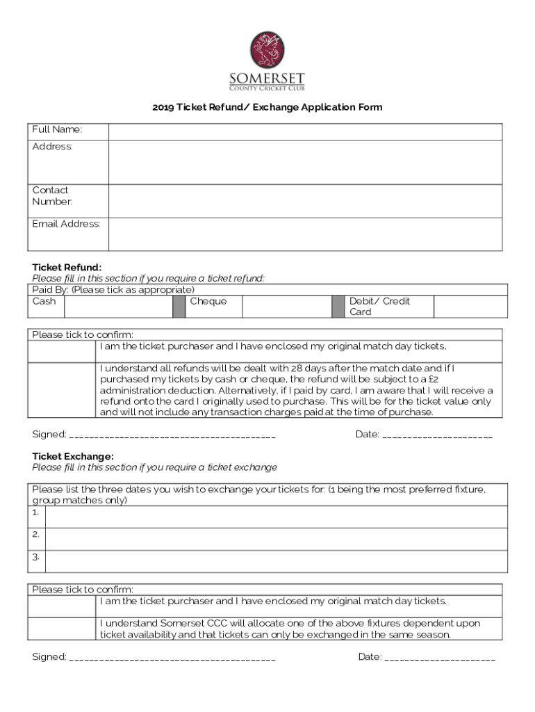 Edit your 2019 ticket refund exchange form online
