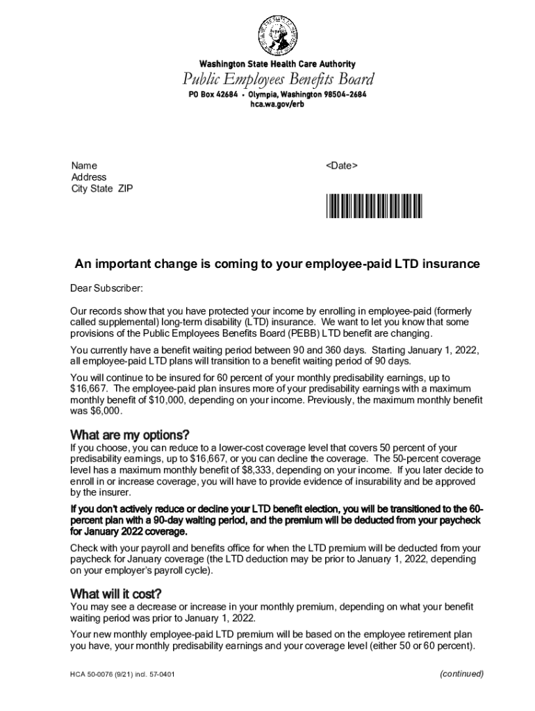 Washington State Health Care AuthorityPublic Employees Benefits Board PO Box 42684 Olympia, Washington 985042684 HCA.Wei.gov×rename Address City State Update**An important change is coming to your
