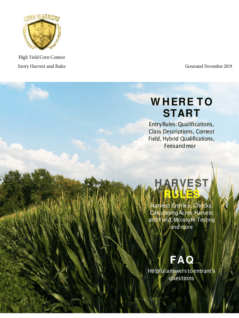 High Yield Corn Contest Entry Harvest and Regenerated November 2019WHERE T O Starter Rules: Qualifications, Class Descriptions, Contest Field, Hybrid Qualifications, Fees and more A R VE S T RULESHarvest