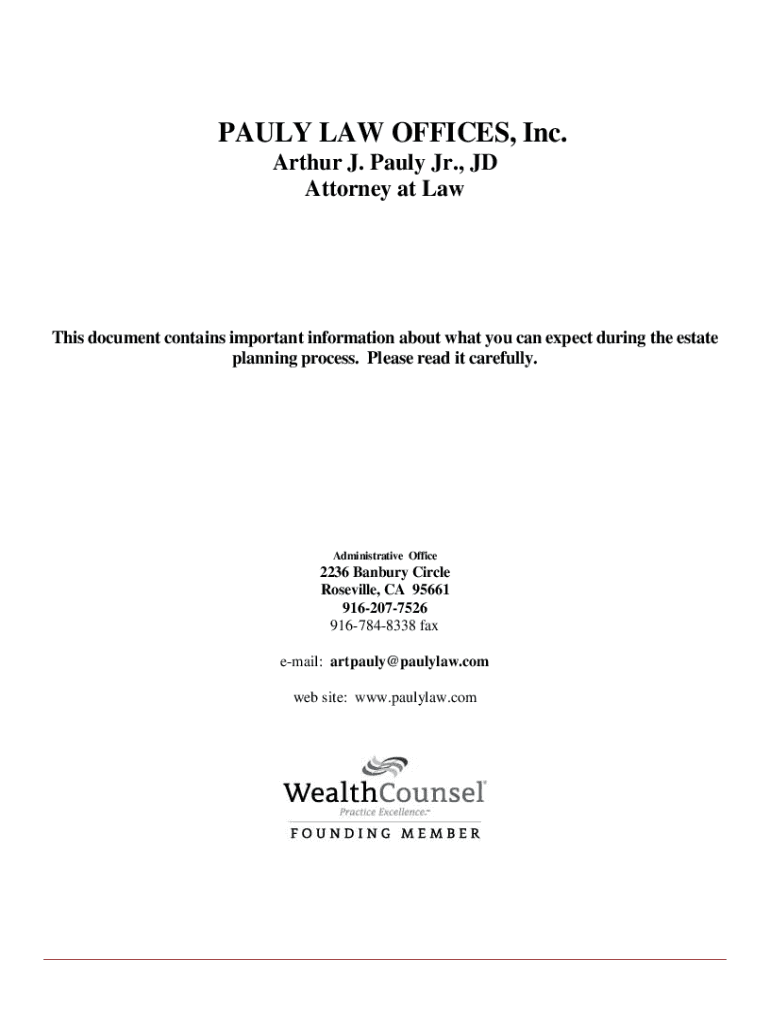 PAUL LAW OFFICES, Inc. Arthur J. Paul Jr., JD Attorney at Mathis document contains important information about what you can expect during the estate planning process. Please read it carefully. Administrative