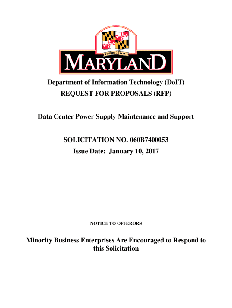 Department of Information Technology (Dot) REQUEST FOR PROPOSALS (RFP) Data Center Power Supply Maintenance and Support SOLICITATION NO. 060B7400053 Issue Date: January 10, 2017NOTICE TO OFFERORSMinority