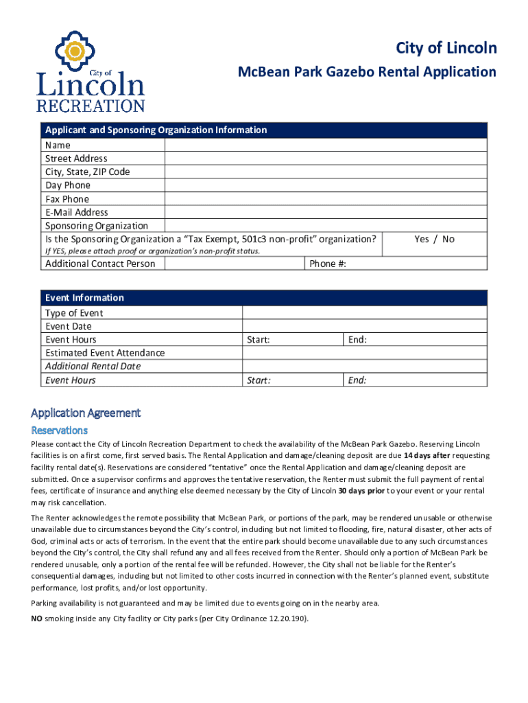 CA McBean Park Gazebo Rental Application - City of Lincoln Form Versions