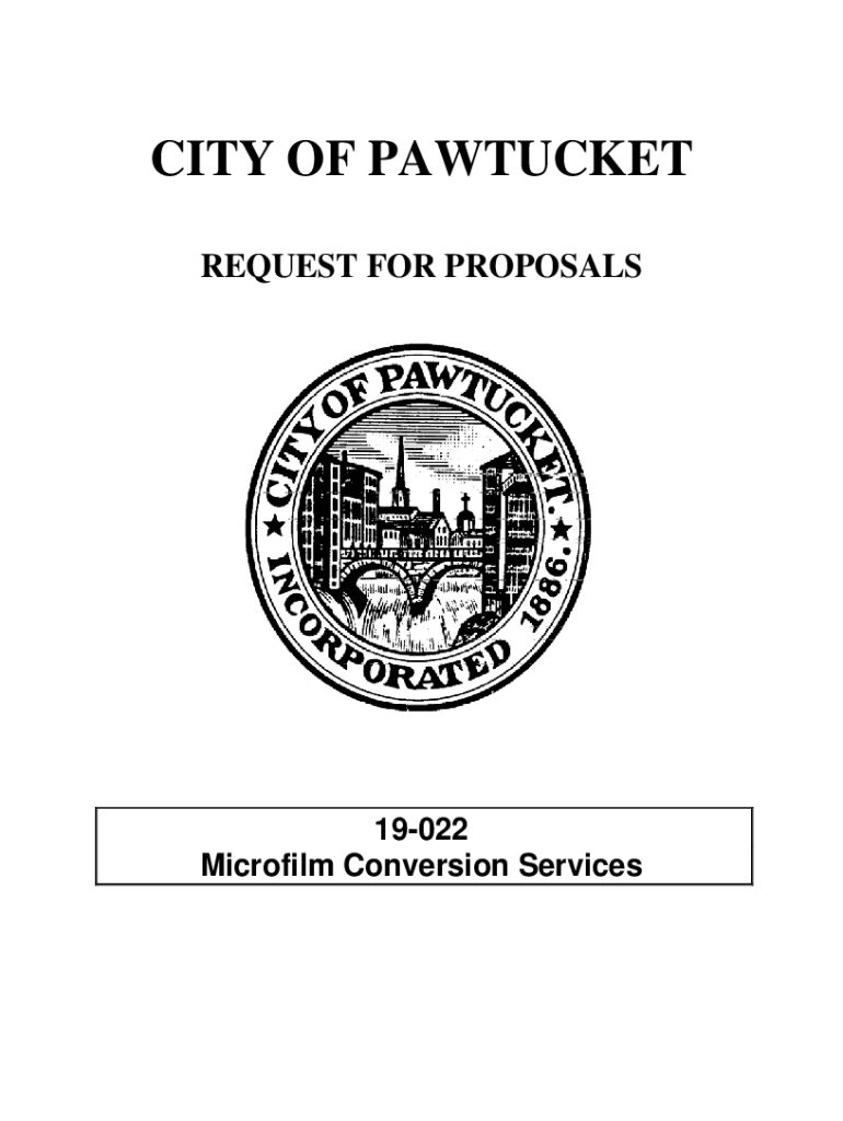 CITY OF PAWTUCKET REQUEST FOR PROPOSALS19022 Microfilm Conversion ServicesContents: 1.0Bid×Solicitation Information2.0Instructions and Notifications to Bidders3.0Overview4.0Scope of Work5.0Insurance6.0Acknowledgement