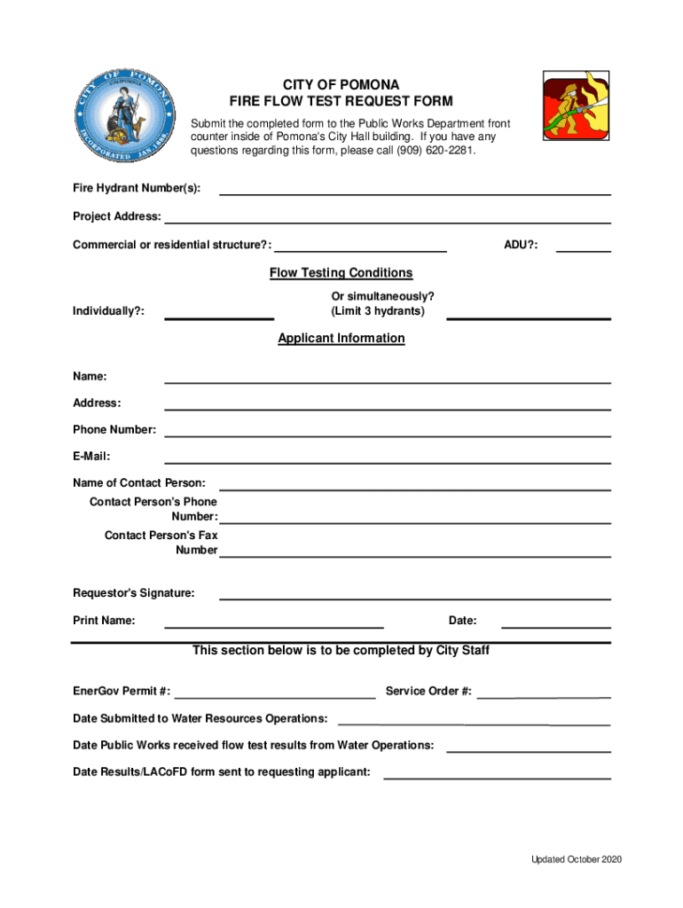 Get the free CITY OF POMONA FIRE FLOW TEST REQUEST FORM