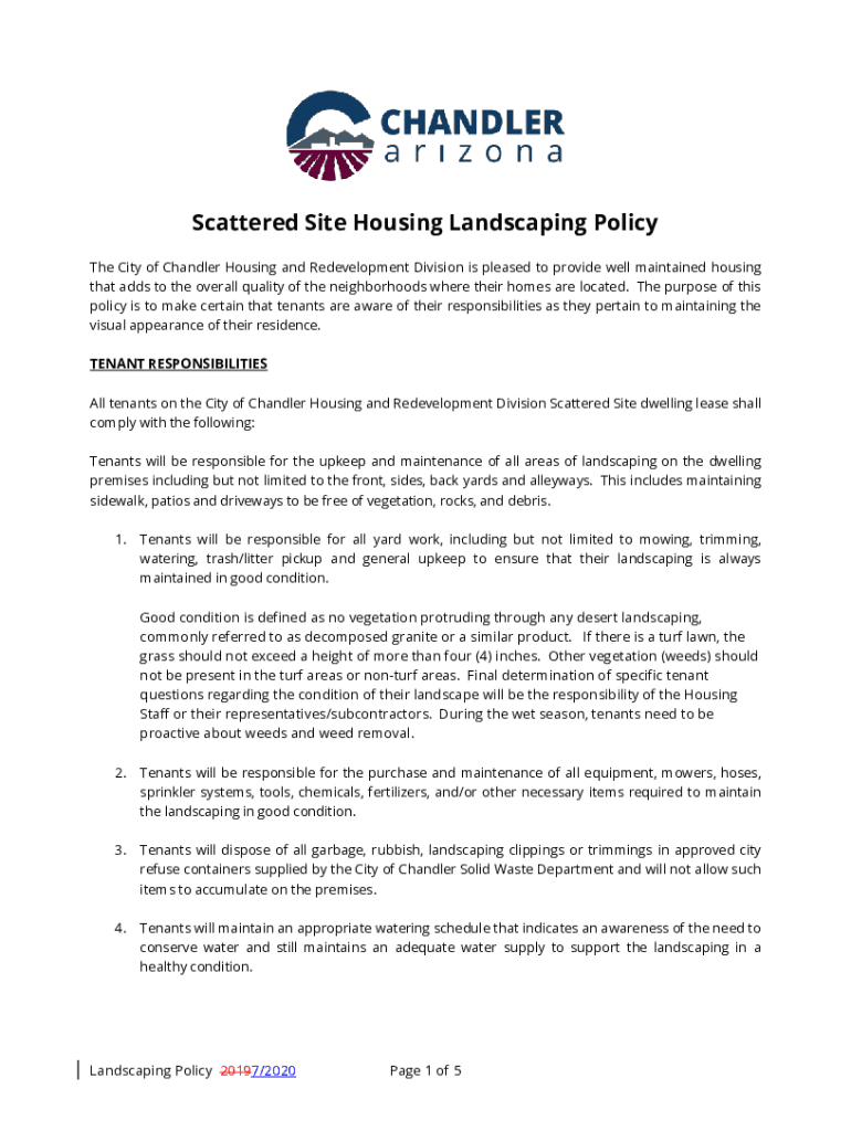 Scattered Site Housing Landscaping Policy The City of Chandler Housing and Redevelopment Division is pleased to provide well maintained housing that adds to the overall quality of the neighborhoods