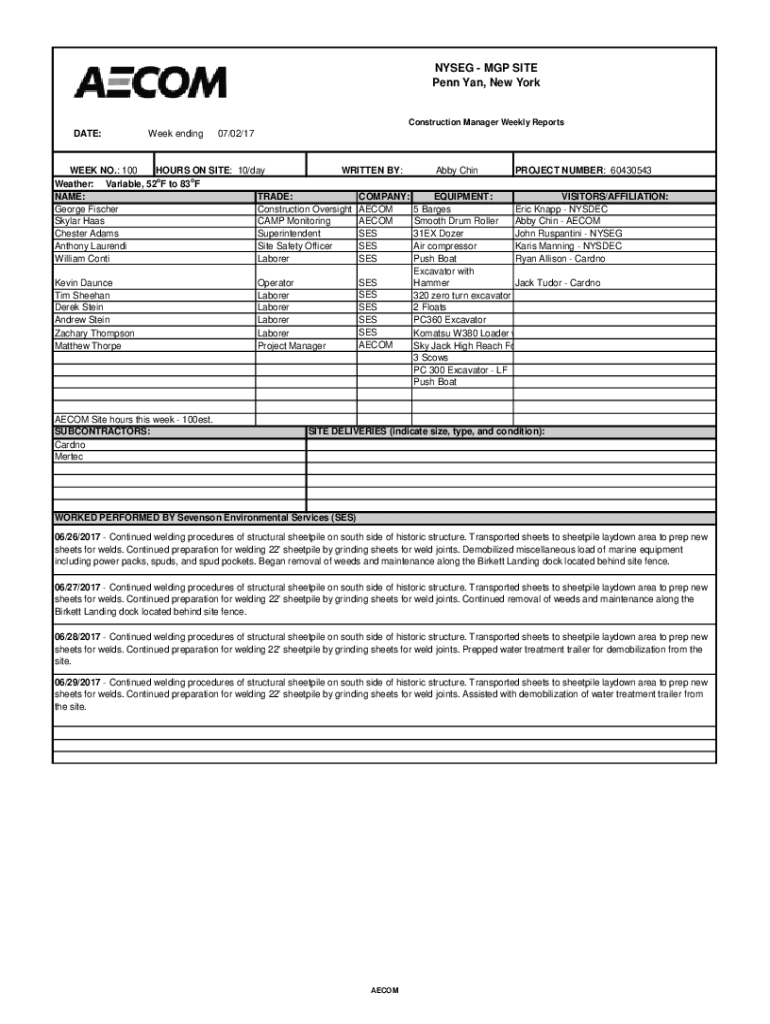 NYSE MAP SITE Penn An, New Reconstruction Manager Weekly Reportage:Week ending07×02/17WEEK NO.: 100 HOURS ON SITE: 10×day WRITTEN BY: Weather: Variable, 52oF to 83oF COMPANY: TRADE: NAME: George