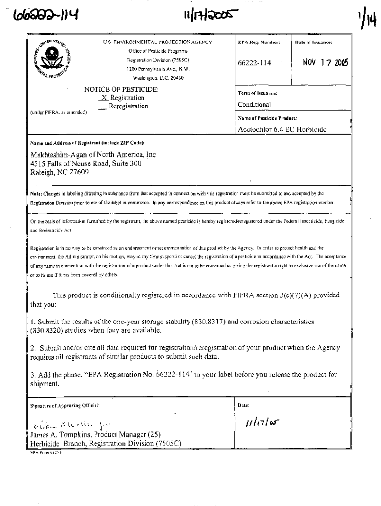 Get the free U.S. EPA, Pesticide Product Label, ACETOCHLOR 6.4 EC ...