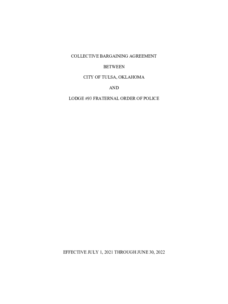 COLLECTIVE BARGAINING AGREEMENT BETWEEN CITY OF TULSA, OKLAHOMA AND LODGE #93 FRATERNAL ORDER OF POLICEEFFECTIVE JULY 1, 2021, THROUGH JUNE 30, 2022TABLE OF CONTENTS COLLECTIVE BARGAINING AGREEMENT