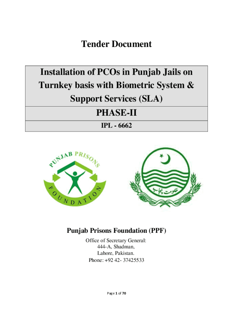 Tender Document Installation of PCs in Punjab Jails on Turnkey basis with Biometric System & Support Services (SLA) PHASE ILL 6662Punjab Prisons Foundation (PDF) Office of Secretary General: 444A,