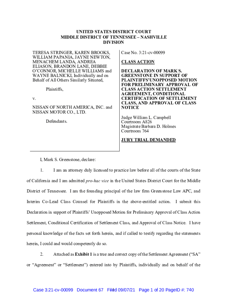 Owners of Nissan and Infiniti vehicles with CVT who are part of the class action lawsuit settlement are required to file the nissan-infiniti-cvt-settlement-agreement.