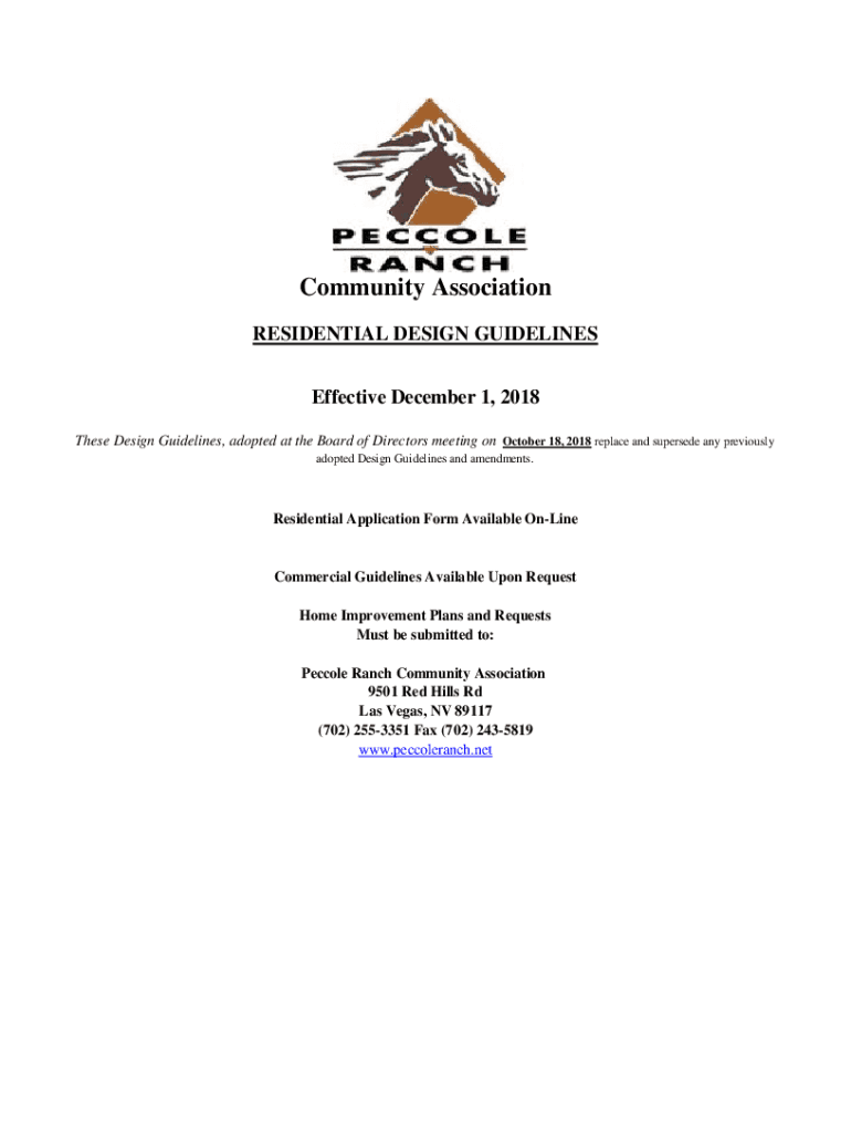Community Association RESIDENTIAL DESIGN GUIDELINES Effective December 1, 2018, These Design Guidelines, adopted at the Board of Directors meeting on October 18, 2018, replace and supersede any previously