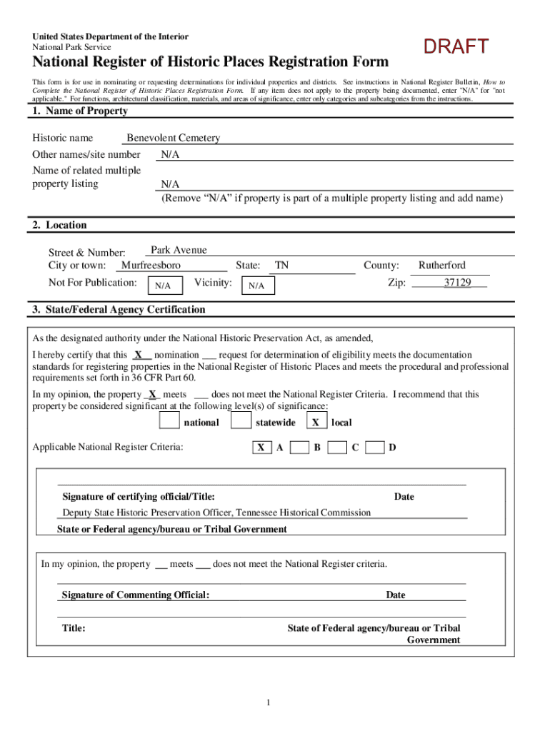 Easy online national register of historic completion using pdfFiller. Also, it allows you to legally eSign your form and change original PDF material. Create a free account and manage documents online.