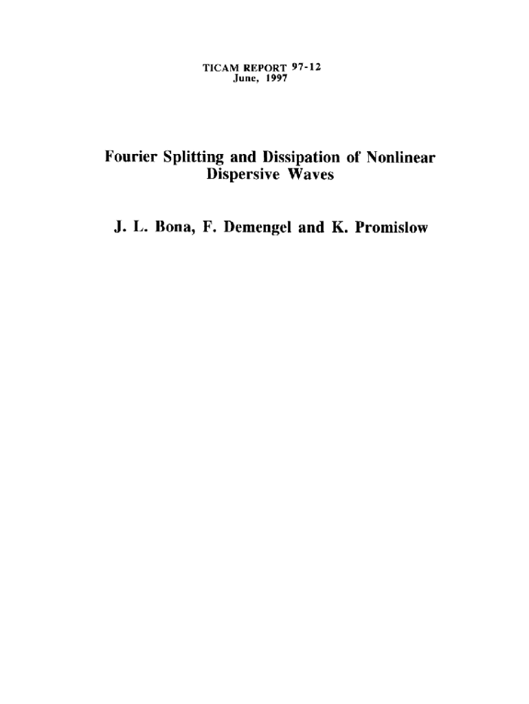CICAM REPORT 9712 June, 1997Fourier Splitting and Dissipation of Nonlinear Dispersive Waves. L. Bond, F. Demented and K. PromislowINSTRUCTIONS FOR CICAM REPORTS Texas Institute for Computational and