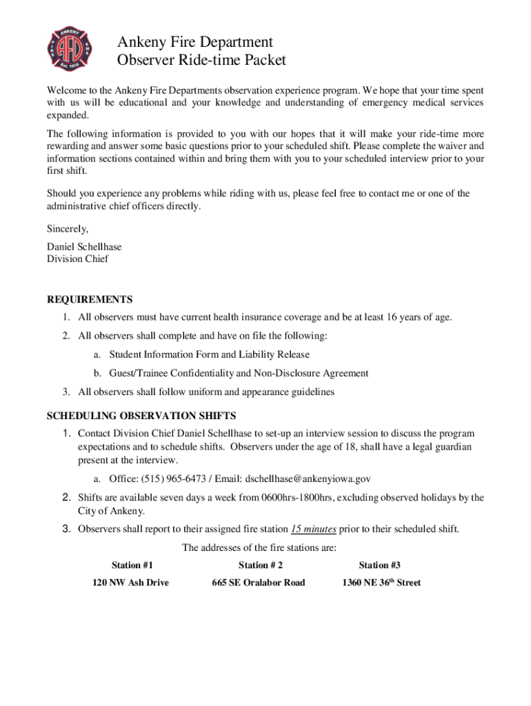 Get the free Ankeny Fire Department Observer Ride-time Packet