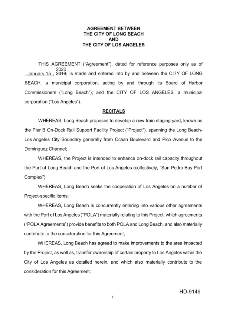 AGREEMENT BETWEEN THE CITY OF LONG BEACH AND THE CITY OF LOS ANGELESTHIS AGREEMENT (Agreement\”), dated for reference purposes only as of 2020 January 15, 2019, is made and entered into by and between