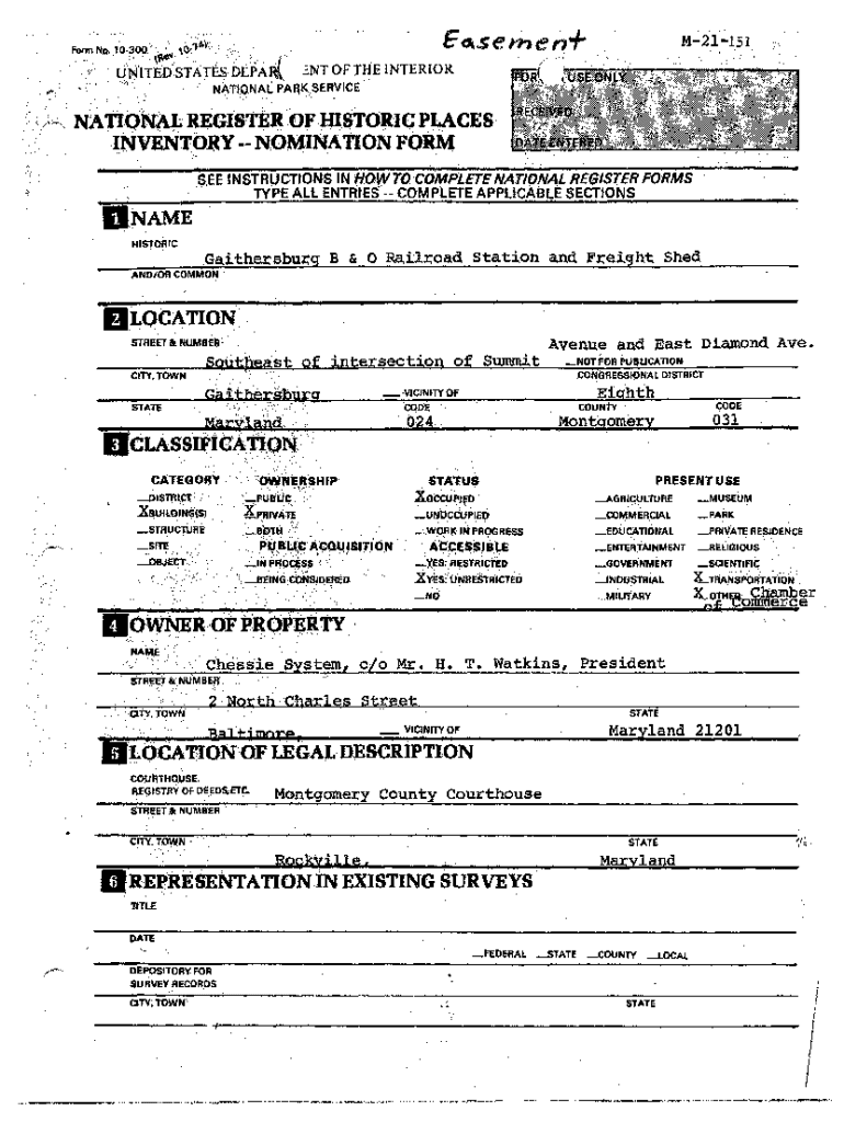 4 Form No. 10300 f.e\'I, 01,.UNITED STATES DEPART.(NATIONAL, Easel\'hen+,,,. M21151.:.NT OF THE INTERIORPAijK SERVICENATIONAL REGISTER OF STOIC PLACES INVENTORY_ NOMINATION FORM SEE INSTRUCTIONS IN