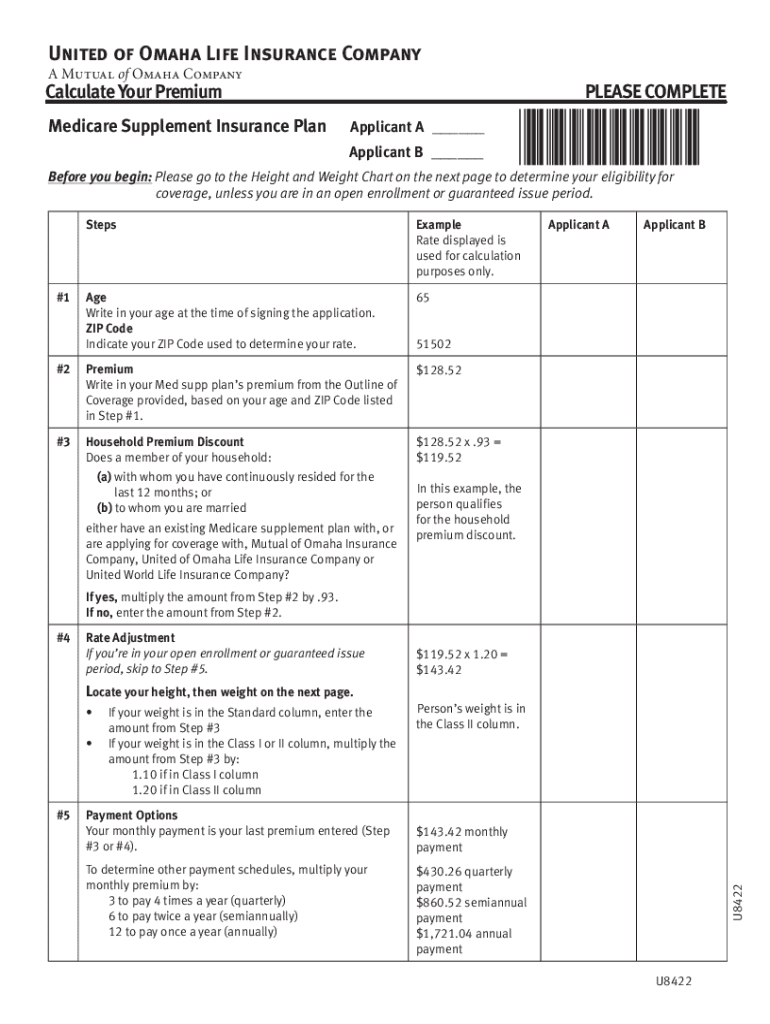 United of Omaha Life Insurance Company A Mutual of Omaha CompanyCalculate Your Premium Medicare Supplement Insurance PlanApplicant A ___ Applicant B ___PLEASE COMPLETEBefore you begin: Please go to