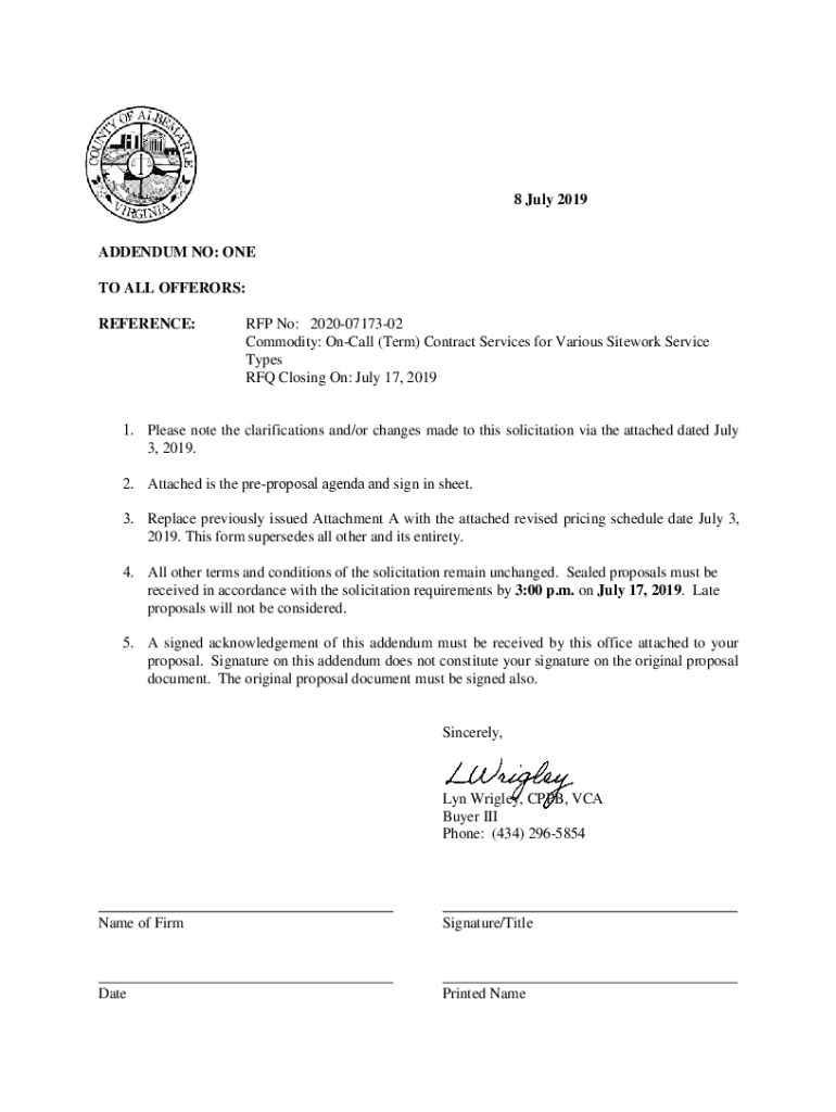 Get the free www.fredericksburgva.govDocumentCenterViewAddendum No. 1 to All Offerors CHANGES: 1....