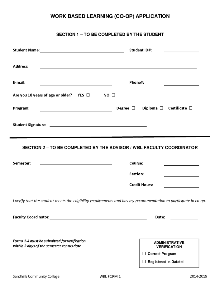 Get the free www.sandhills.edu wp-content uploadsWORK BASED LEARNING (CO-OP) APPLICATION - Sandhills
