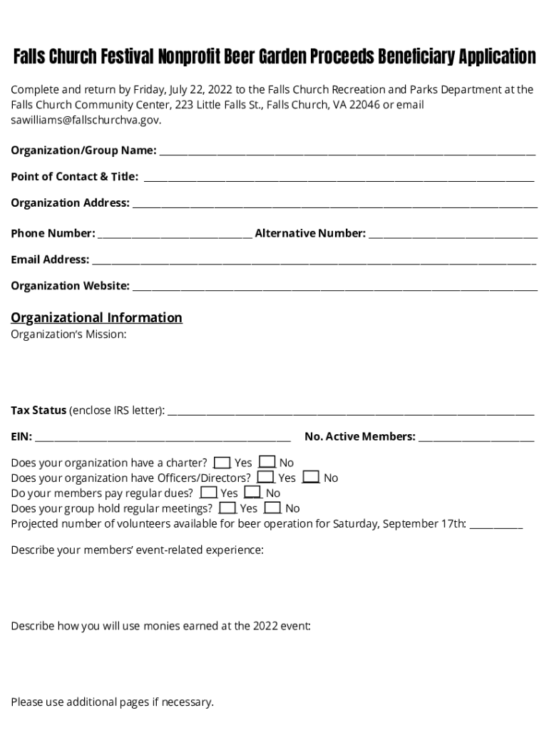 Non-Profit Beer Garden Beneficiary is not the form you're looking for?Search for another form here.
