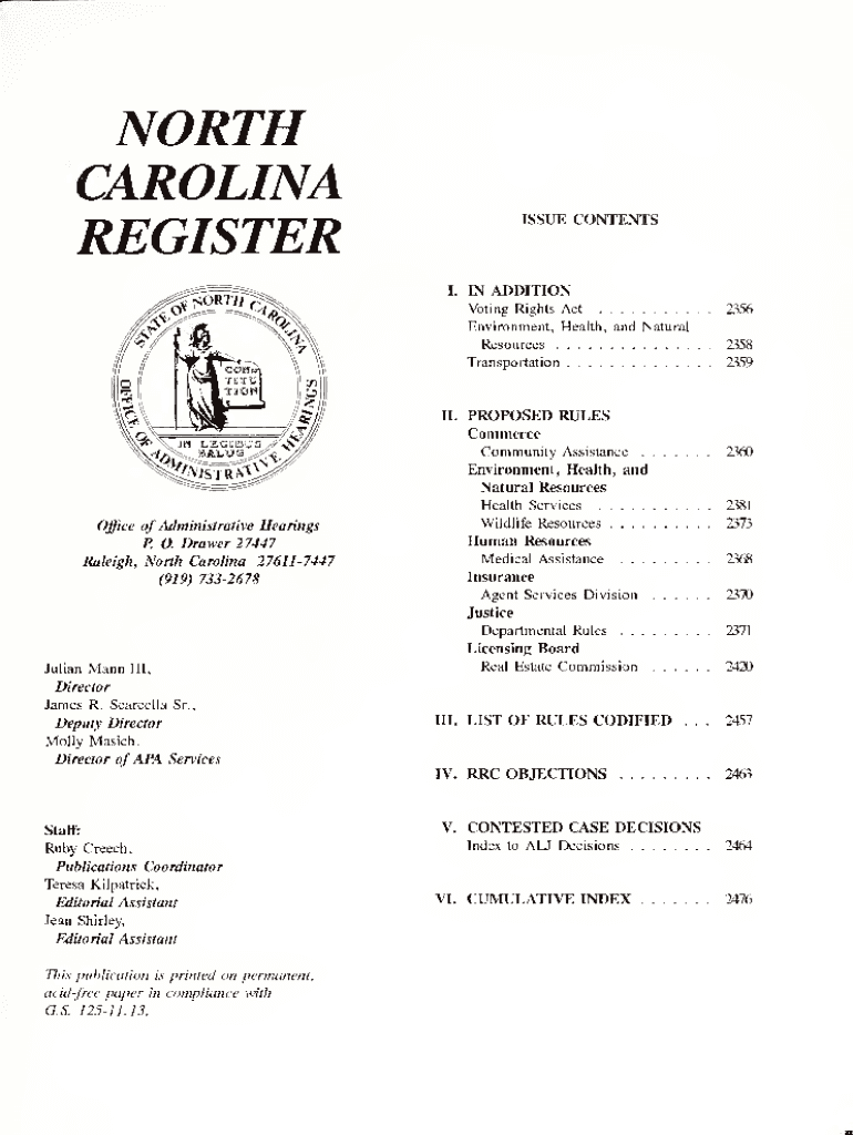 Get the free NORTH CAROLINA REGISTER IN THIS ISSUE I. IN ADDITION ... - NC