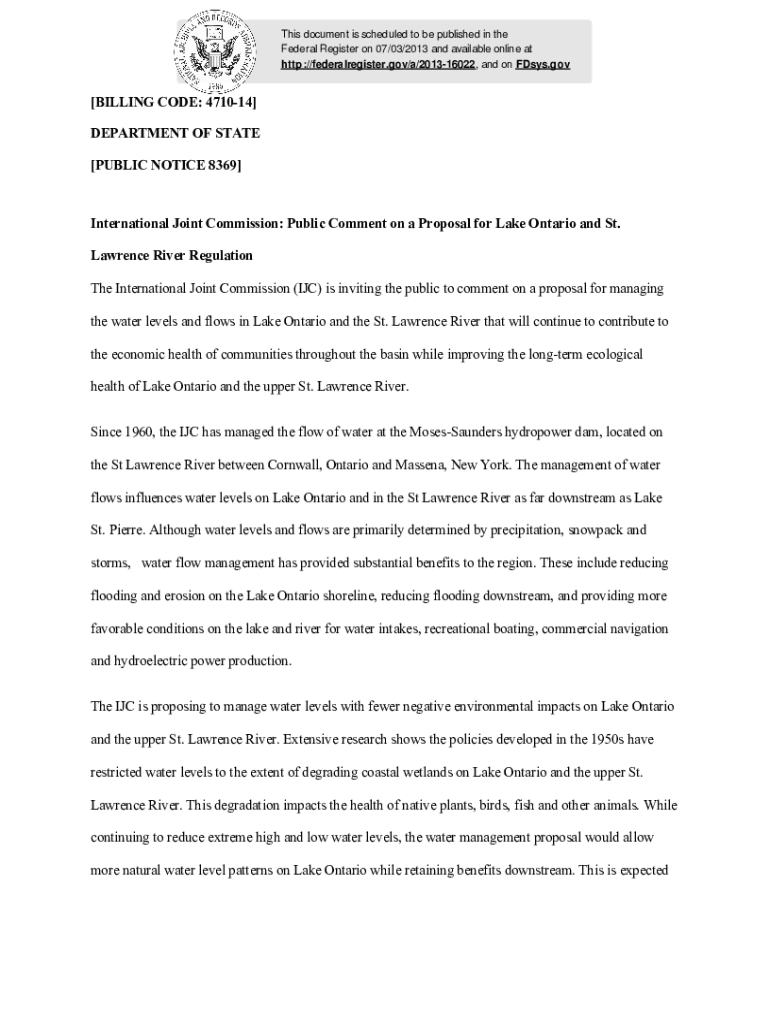 This document is scheduled to be published in the Federal Register on 07×03/2013 and available online at HTTP://federal register.gov×a/201316022, and on Days.gov×BILLING CODE: 471014] DEPARTMENT