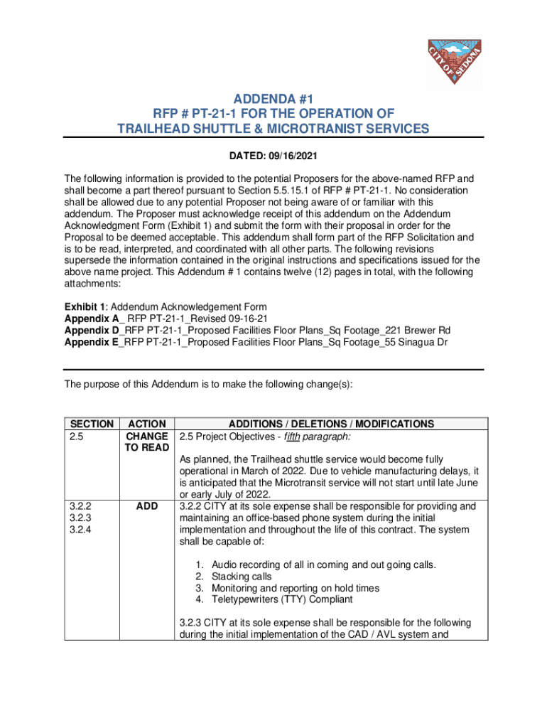 Get the free ADDENDUM NUMBER 1 To the REQUEST FOR PROPOSALS Issued by ...
