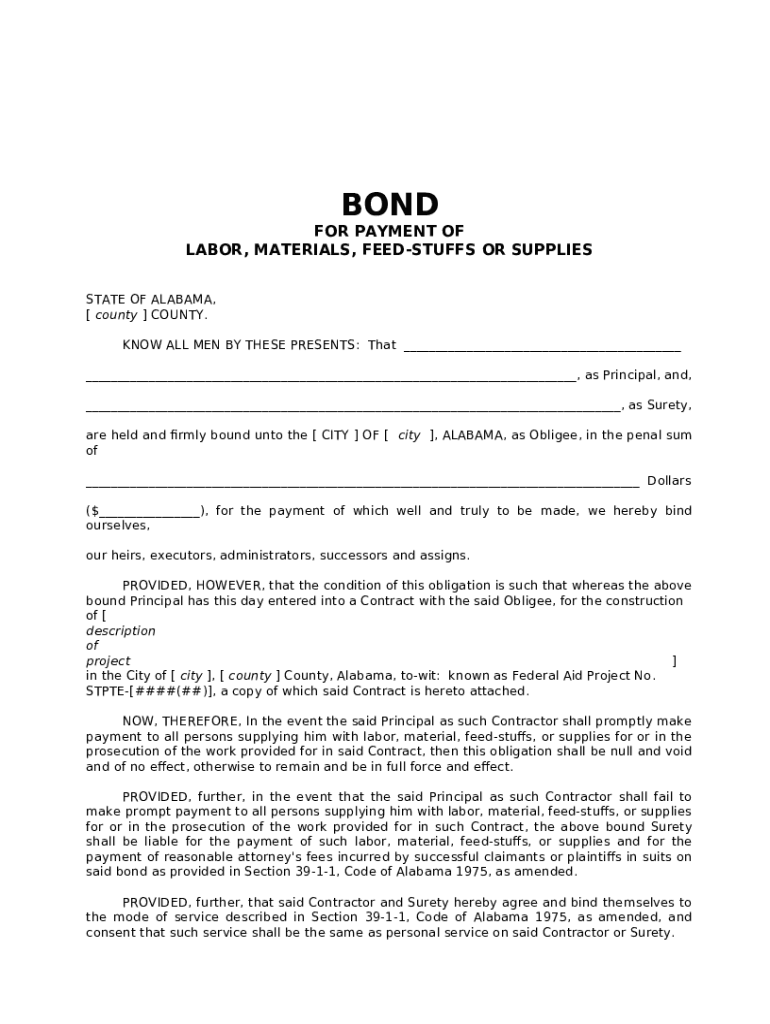 The www.lawinsider.comclauselabor-and-materialsLabor and Materials Payment Bond Sample ClausesLaw Insider is a Word document which can be filled-out and signed for certain needs. Then, it is furnished to the exact addressee in order to provide some info and data. The completion and signing can be done manually in hard copy or using a suitable tool like PDFfiller. These services help to complete any PDF or Word file without printing them out. It also lets you customize its appearance for the needs you have and put a valid digital signature. Once you're good, you send the www.lawinsider.comclauselabor-and-materialsLabor and Materials Payment Bond Sample ClausesLaw Insider to the respective recipient or several recipients by mail and also fax. PDFfiller is known for a feature and options that make your document of MS Word extension printable. It provides a number of settings for printing out. It doesn't matter how you will deliver a form - physically or electronically - it will always look well-designed and organized. In order not to create a new writable document from scratch again and again, turn the original document as a template. After that, you will have a rewritable sample.