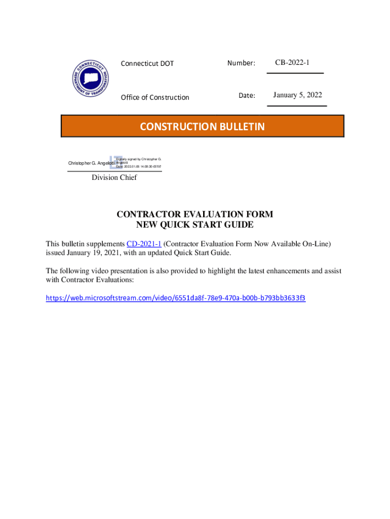 Connecticut Office of ConstructionNumber:Date:CB20221January 5, 2022CONSTRUCTION BULLETIN Christopher G. AngelottiDigitally signed by Christopher G. Angelo Date: 2022.01.06 14:08:3005\'00\'Division
