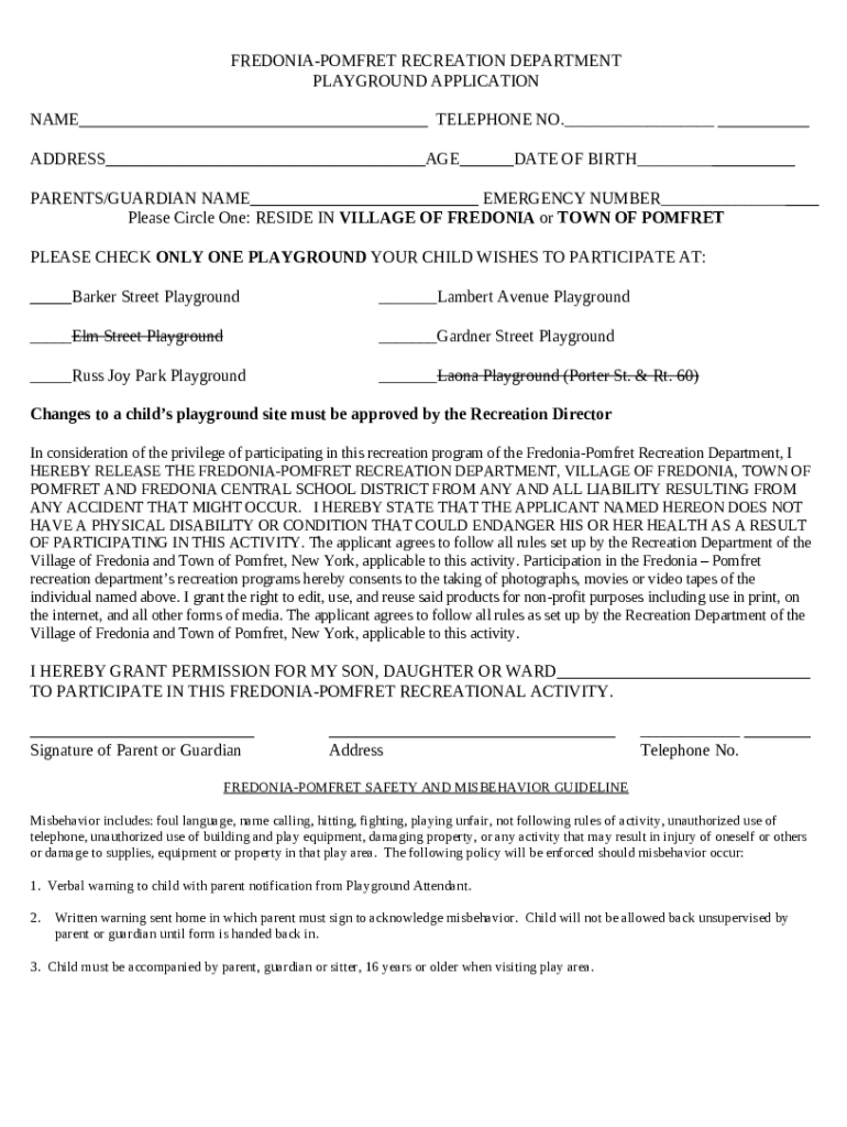 The www.danbury-ct.govPlaygroundPlayground Wood FiberParks and Recreation Department is a Word document you can get filled-out and signed for specific purposes. In that case, it is provided to the relevant addressee in order to provide some info and data. The completion and signing is available or via an appropriate service e. g. PDFfiller. Such services help to submit any PDF or Word file online. It also allows you to edit it according to the needs you have and put a legal electronic signature. Once you're good, the user ought to send the www.danbury-ct.govPlaygroundPlayground Wood FiberParks and Recreation Department to the recipient or several ones by email or fax. PDFfiller includes a feature and options that make your blank printable. It has various options for printing out. It doesn't matter how you will file a document - in hard copy or by email - it will always look professional and organized. In order not to create a new writable document from the beginning again and again, turn the original Word file as a template. Later, you will have a rewritable sample.