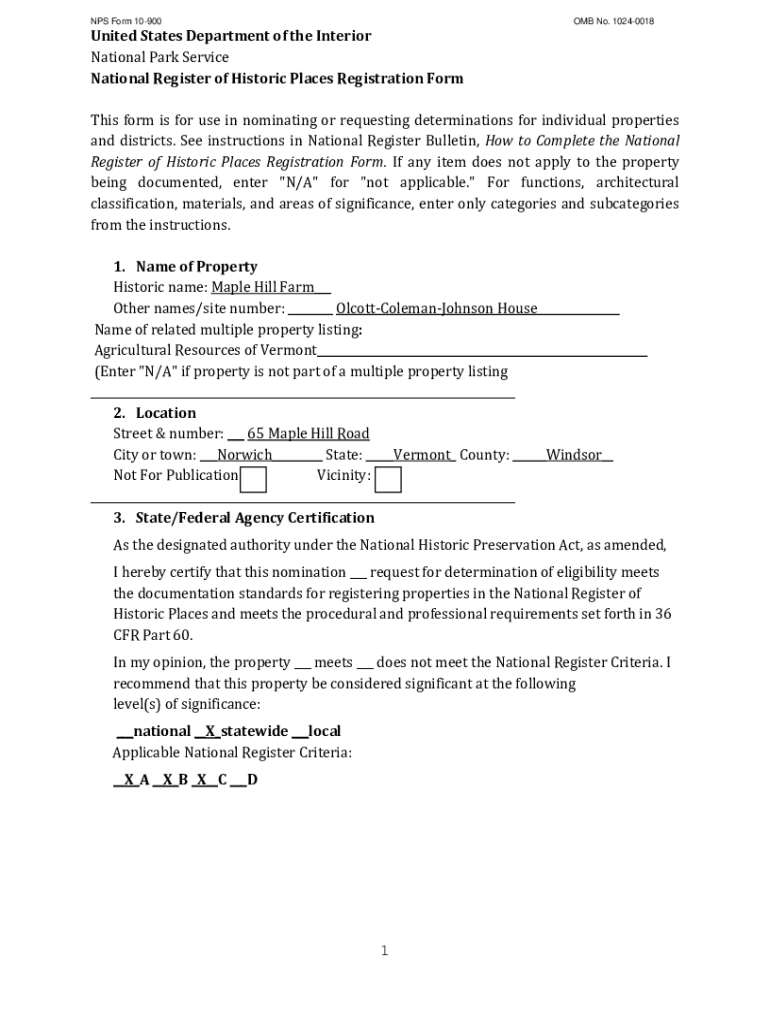 NPS Form 10900United States Department of the Interior National Park Service National Register of Historic Places Registration Form OMB No. 10240018This form is for use in nominating or requesting
