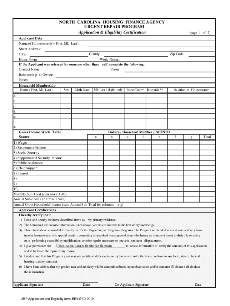 Get the free NORTH CAROLINA HOUSING FINANCE AGENCY URGENT REPAIR ...