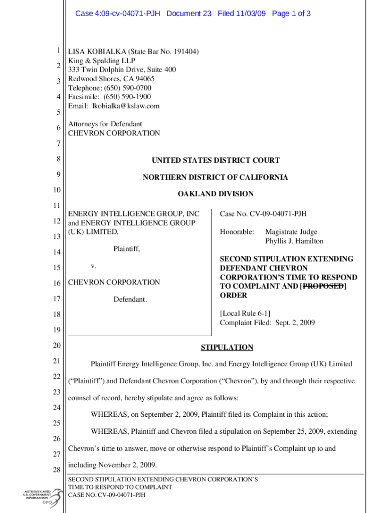 Case 4:09cv04071PJH Document 23 Filed 11×03/09-Page 1 of 31 2 3 4 5 6LISA KODIAK (State Bar No. 191404) King & Scalding LLP 333 Twin Dolphin Drive, Suite 400 Redwood Shores, CA 94065 Telephone: (650×