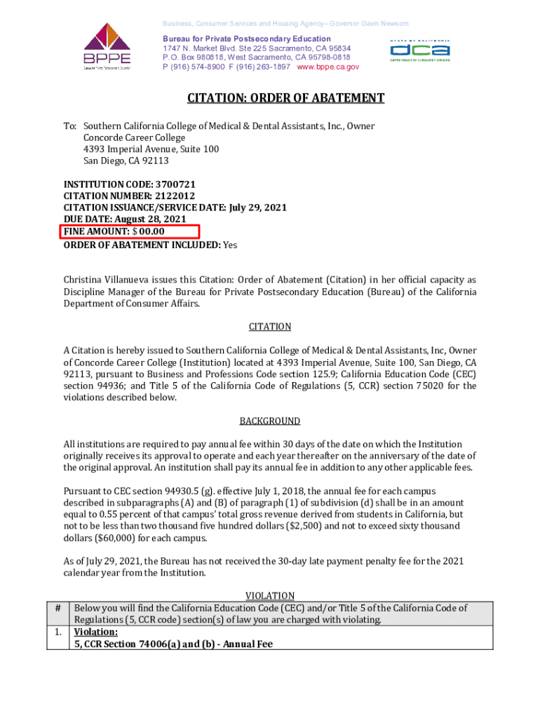 Get the free Bureau for Private Postsecondary Education - Concorde Career College - Order of Abat...