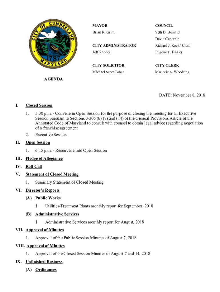 Get the free Online Mayor and City Council of Cumberland Fax ...