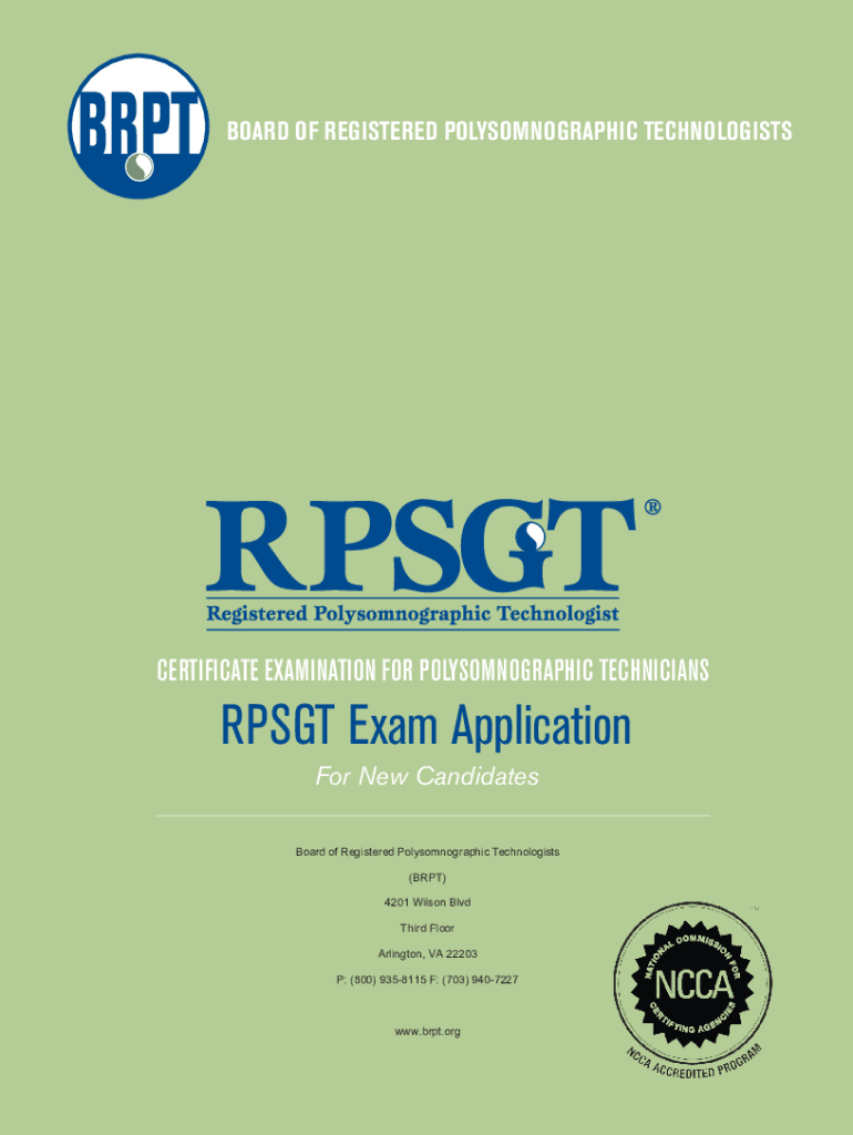 BOARD OF REGISTERED POLYSOMNOGRAPHIES TECHNOLOGISTSCERTIFICATE EXAMINATION FOR POLYSOMNOGRAPHIES TECHNICIANSRPSGT Exam Application For New Candidates Board of Registered Polysomnographies Technologists